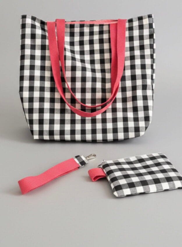 Pack Totebag Vichy naranja con accesorios
